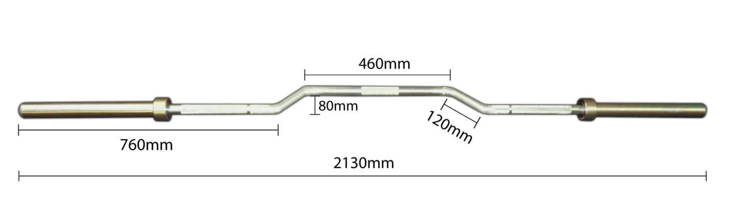 Overall length of 213cm (7ft) with an 80mm drop in the bar wide enough to go around Rowing bench (Bench Pull).