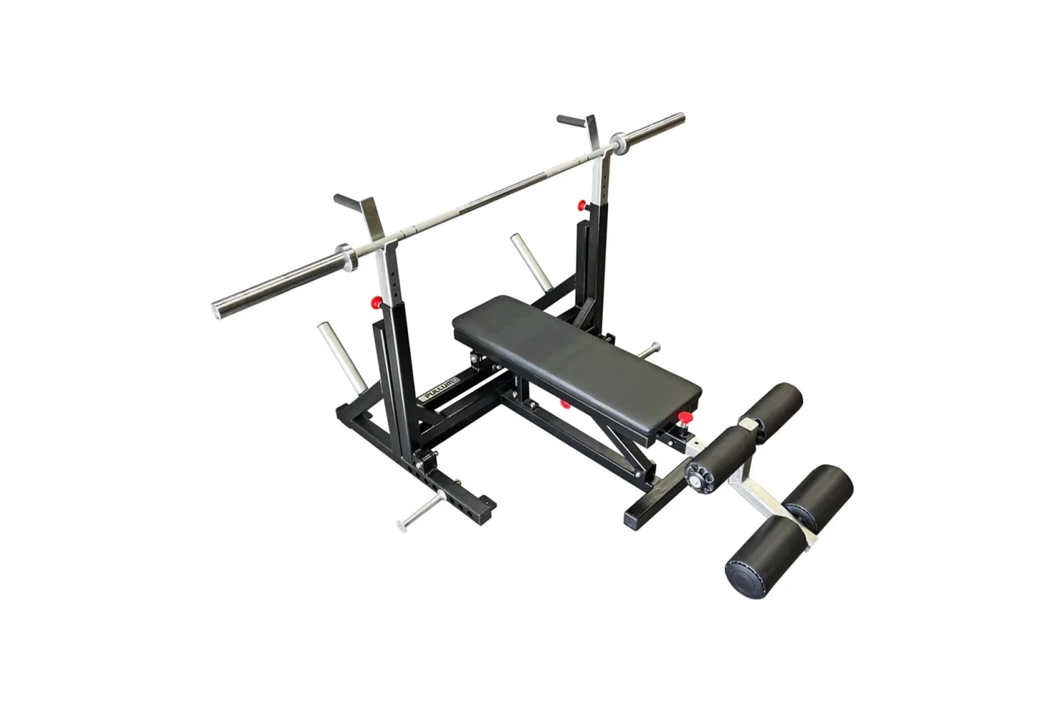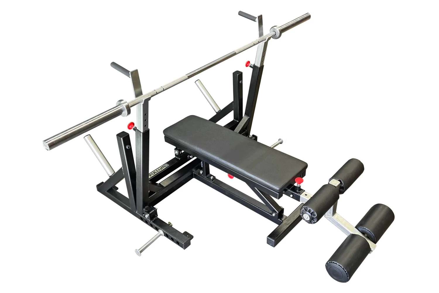 Introducing the Flat/Decline Breaker Bench Press which makes common shoulder injuries a thing of the past. The Pullum Breaker Bench has been specifically engineered to eliminate the risk of shoulder injuries that occur during heavy lifts. It features pivoting uprights that move forward into the ideal starting position, allowing for safer, smoother takeoffs and reducing strain on your shoulders. This auto-spot feature means you won’t need a lift-off from a spotter like most other Olympic weight benches, meaning every lift will consistently start from the same optimal position. Â