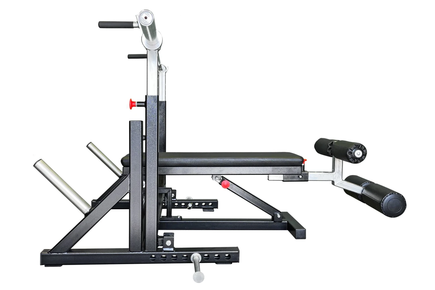 Manufactured with user safety in mind, the Pullum breaker bench is fully adjustable from flat to a steep decline, with adjustable twin leg roller pads and bar uprights so you can find the perfect bench press position. Like all Pullum equipment, our Breaker Bench is incredibly heavy duty and built to last. It also features convenient band loading pegs and built-in plate storage to keep your gym space organised.